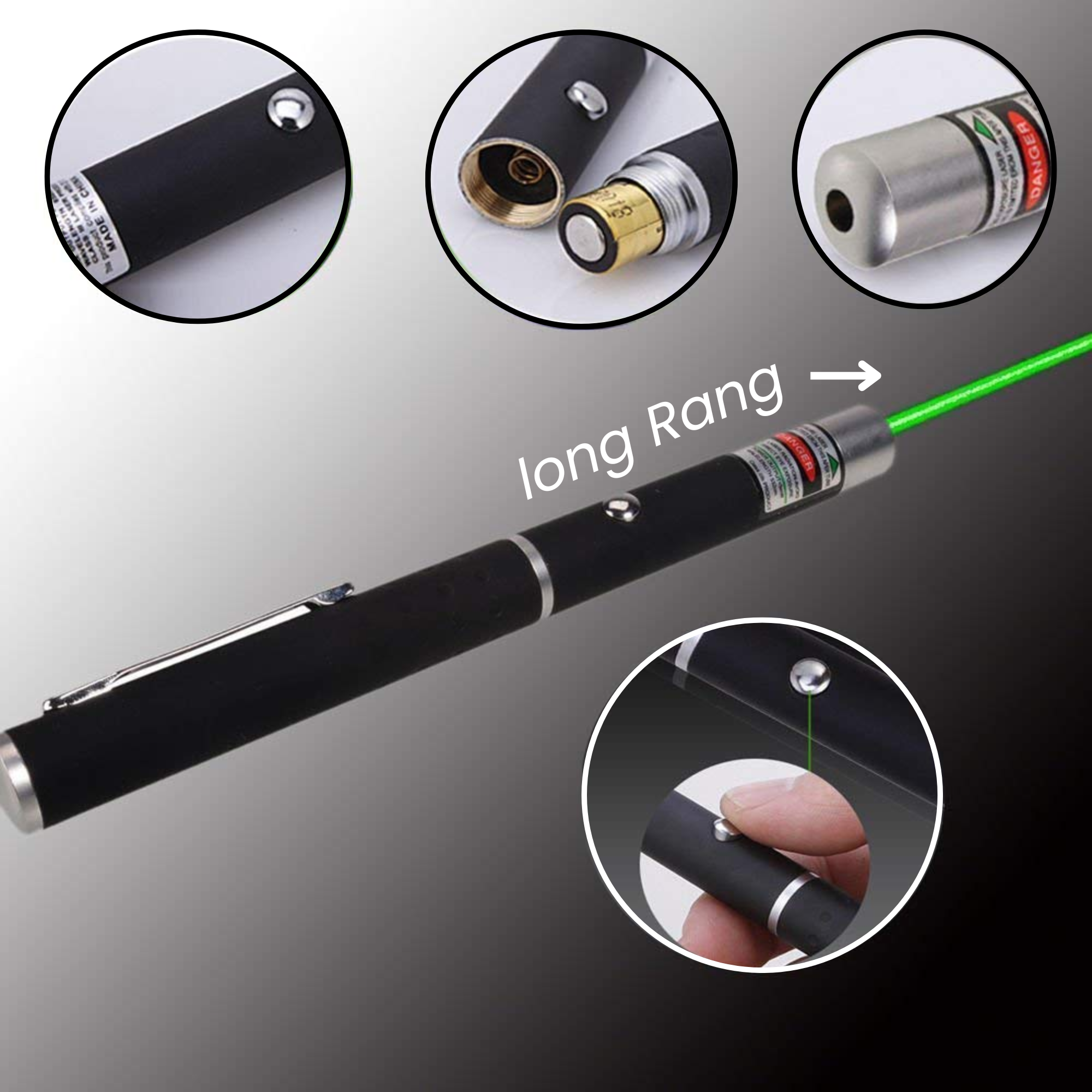 Experience the power of a long-range ultra green laser pointer designed for both professional and entertainment use. With its adjustable cap and 8 unique beam effects, this handheld metal laser light is perfect for presentations, stage shows, outdoor events, and night parties. The high-intensity green beam can travel up to 2000 meters, ensuring clear visibility even in large venues. Built with a sleek and durable metal body, it provides a premium feel and long-lasting performance.